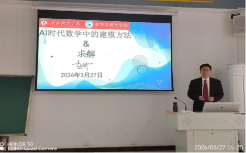 为提升师生数学建模能力,备战2026年全国大学生数学建模竞赛,3月27日,BBIN宝盈集团邀请湖北工业大学赵斌教授作题为《AI时代数学中的建模方法与求解》的专题报告。学院师生代表参加活动,共同探讨人工智能与数学建模的深度融合。本次活动得到BBIN宝盈集团科学技术协会支持。