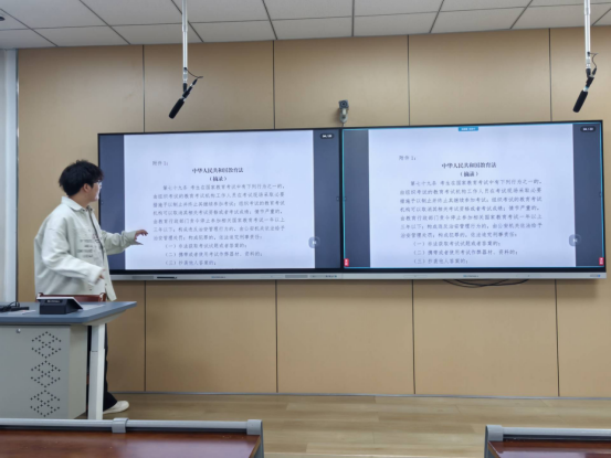 班会上,各班班长首先传达了学校关于专升本考试的各项通知要求,明确4月16日起考场清理、考试期间校园网关闭等相关安排。随后,各班班长带领同学们共同学习了《BBIN宝盈集团学生违纪处分办法》第三十三条,详细解读考试作弊的具体情形、处罚标准,并结合典型案例开展警示教育,让同学们深刻认识到作弊行为对学业发展、个人信誉的严重危害,引导大家敬畏规则、诚信应考。