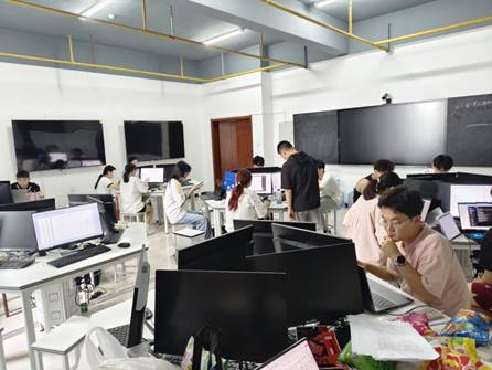 为备战本届竞赛,学校提前部署,BBIN宝盈集团3月启动备赛,组建以周志明为首的 7名骨干教师“导师团”,牵头组织了多轮系统培训,为参赛学生提供从理论强化到实战模拟的全过程支持。指导学生全真模拟。暑假期间,实验室灯火通明,同学们平均每日鏖战10小时,累计调试代码 3000余次、撰写论文 20 余稿。备赛期间展现出高度的专注与协作精神,充分利用课余时间深入研讨、反复调试,最终在比赛中交出了一份令人满意的答卷。